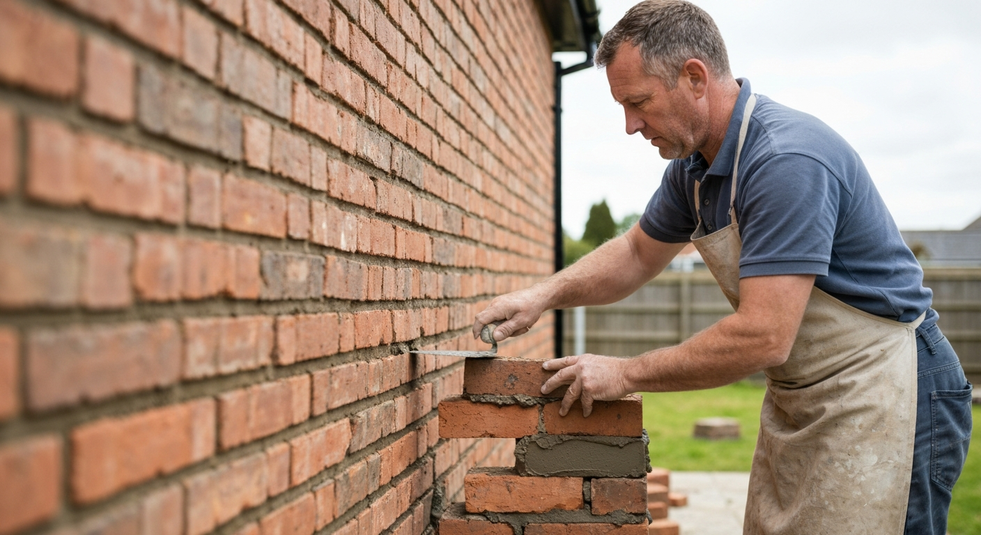 Reprise des joints de mortier deteriores, remplacement de briques fissurees ou decellees. Stoppe les infiltrations et prolonge la vie de votre maconnerie.